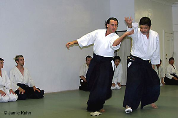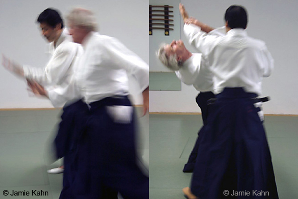 Sugano Sensei before teaching his much anticipated first class at the New York Aikikai, almost 5 months after his operation. :: © Javier Domínguez Sugano Sensei starts talking about his experience and his state of mind to a group of students before class starts. :: © Javier Domínguez Sugano Sensei starts class at 1:30 PM, Tuesday August 12th, 2003. :: © Jaime Kahn Harvey Konigsberg taking ukemi for Sensei. :: © Jaime Kahn Harvey Konigsberg taking ukemi for Sensei. :: © Javier Domínguez Jaime Kahn taking ukemi for Sensei. :: © Javier Domínguez Jaime Kahn taking ukemi for Sensei. :: © Javier Domínguez Luke Machado taking ukemi for Sensei as students watch on. :: © Jaime Kahn Luis Sabater takes ukemi for Sensei´s iriminage. :: © Javier Domínguez Luis Sabater takes ukemi for Sensei´s iriminage. :: © Jaime Kahn Luis Sabater takes ukemi for Sensei´s iriminage. :: © Javier Domínguez Sensei watches students during class. :: © Javier Domínguez Making little adjustments after demonstrating technique. :: © Javier Domínguez Resting after class with Harvey Konigsberg and Susie Low-Beer. Once again, Sensei was back challenging us with a very dynamic class. :: © Javier Domínguez